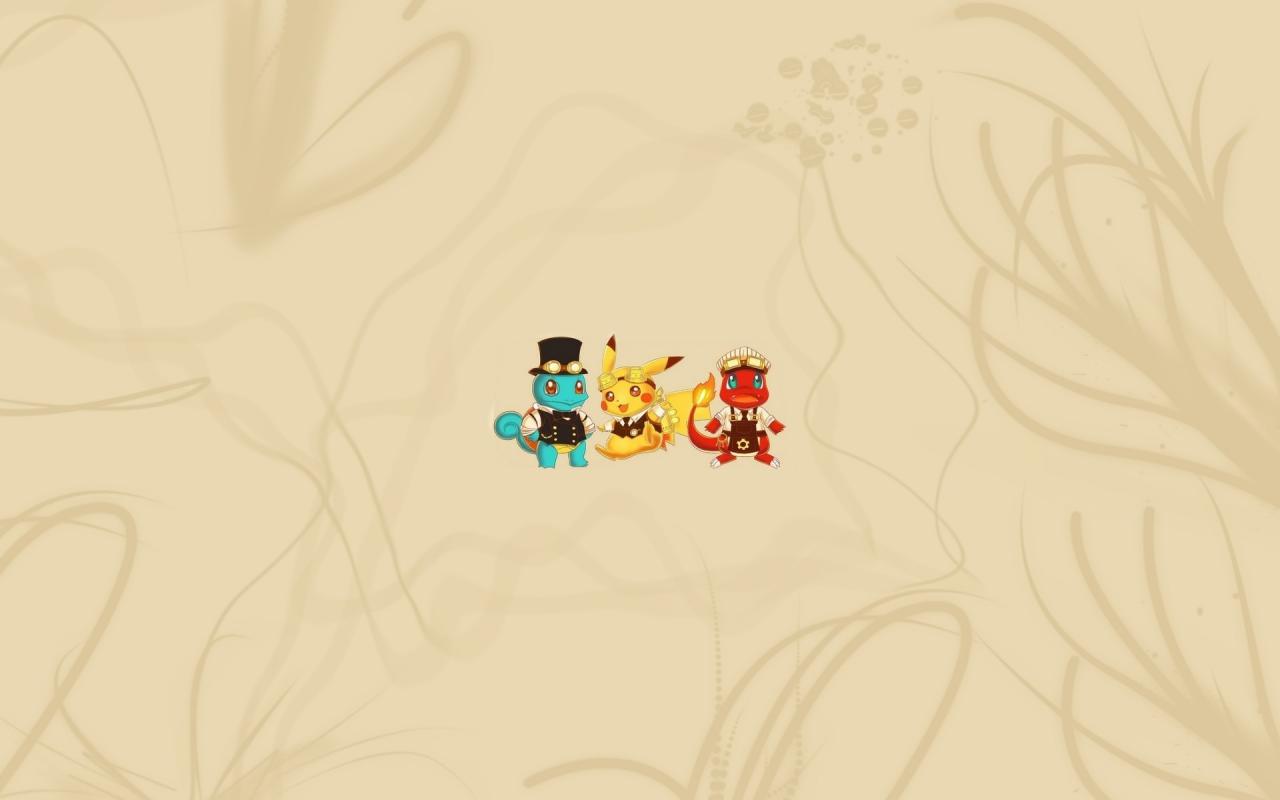 Обои Трио покемонов, бежевый фон