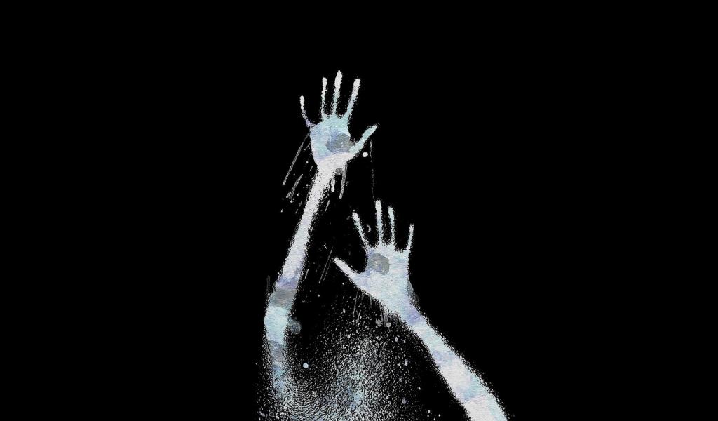 Обои Следы рук на черном фоне