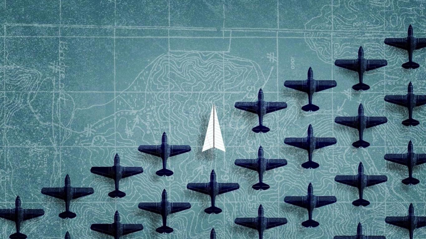 Обои Фигурки самолетов на фоне карты