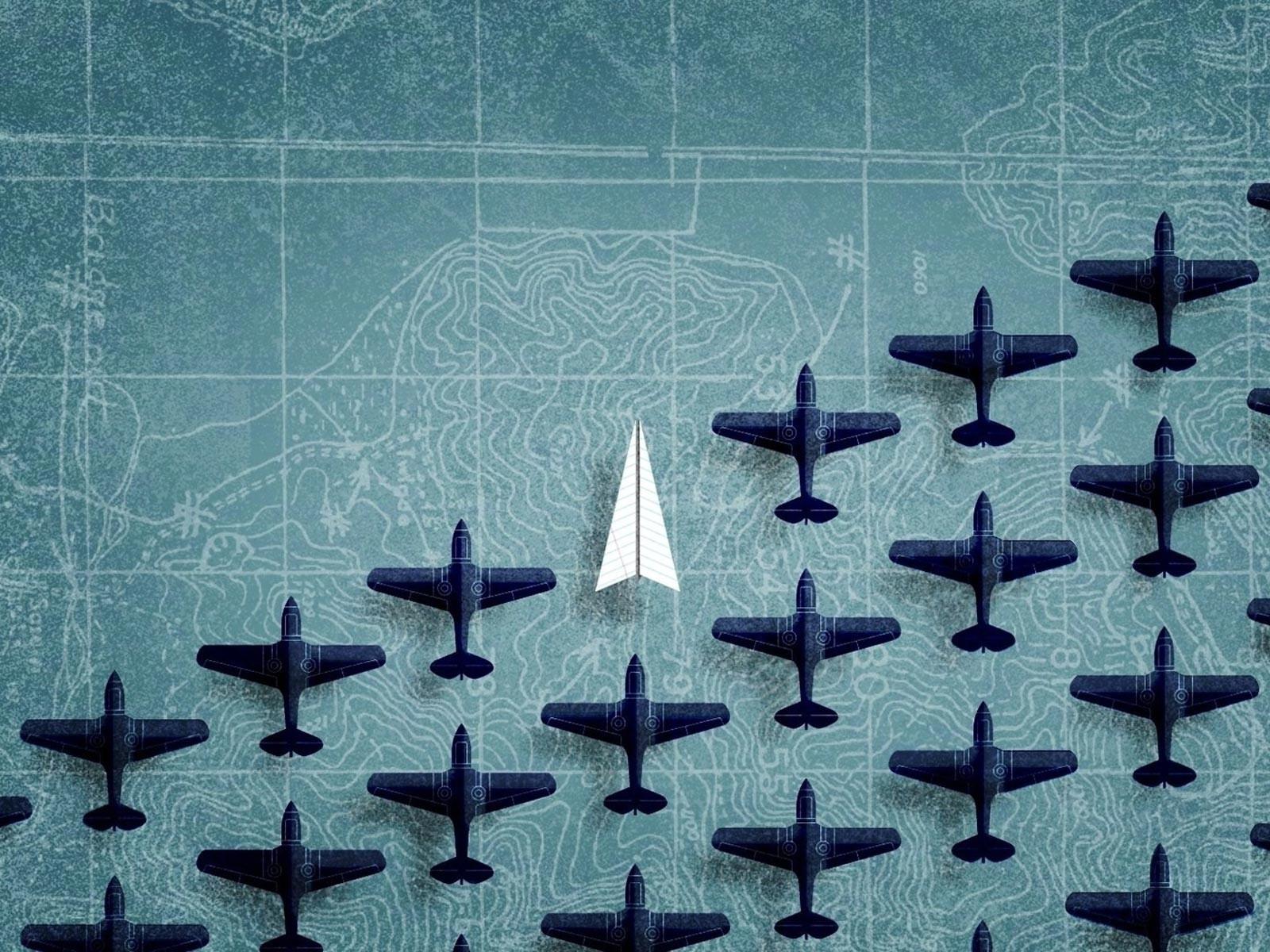 Обои Фигурки самолетов на фоне карты