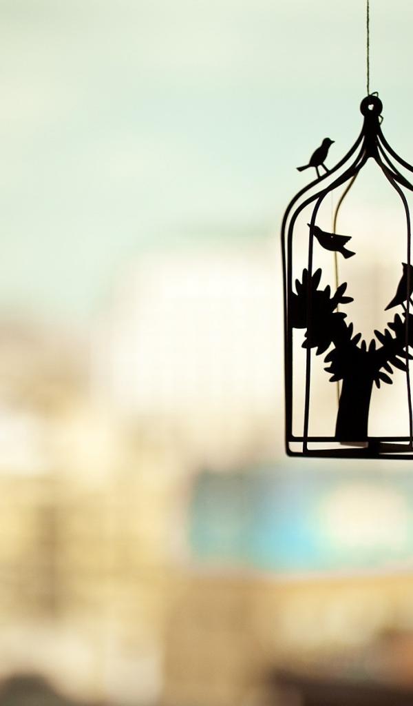 Обои Силуэт клетки для птиц на нечетком фоне