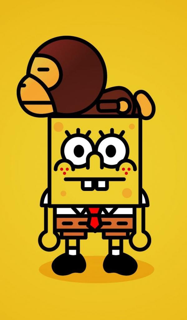 Обои Обезьянка на голове Спанч Боба