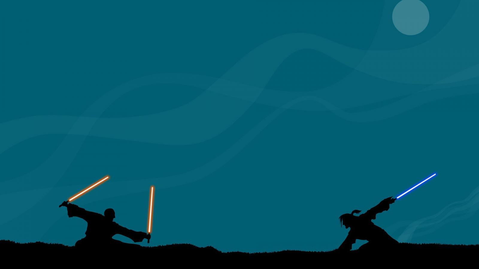 Обои Бой на световых мечах, голубой фон