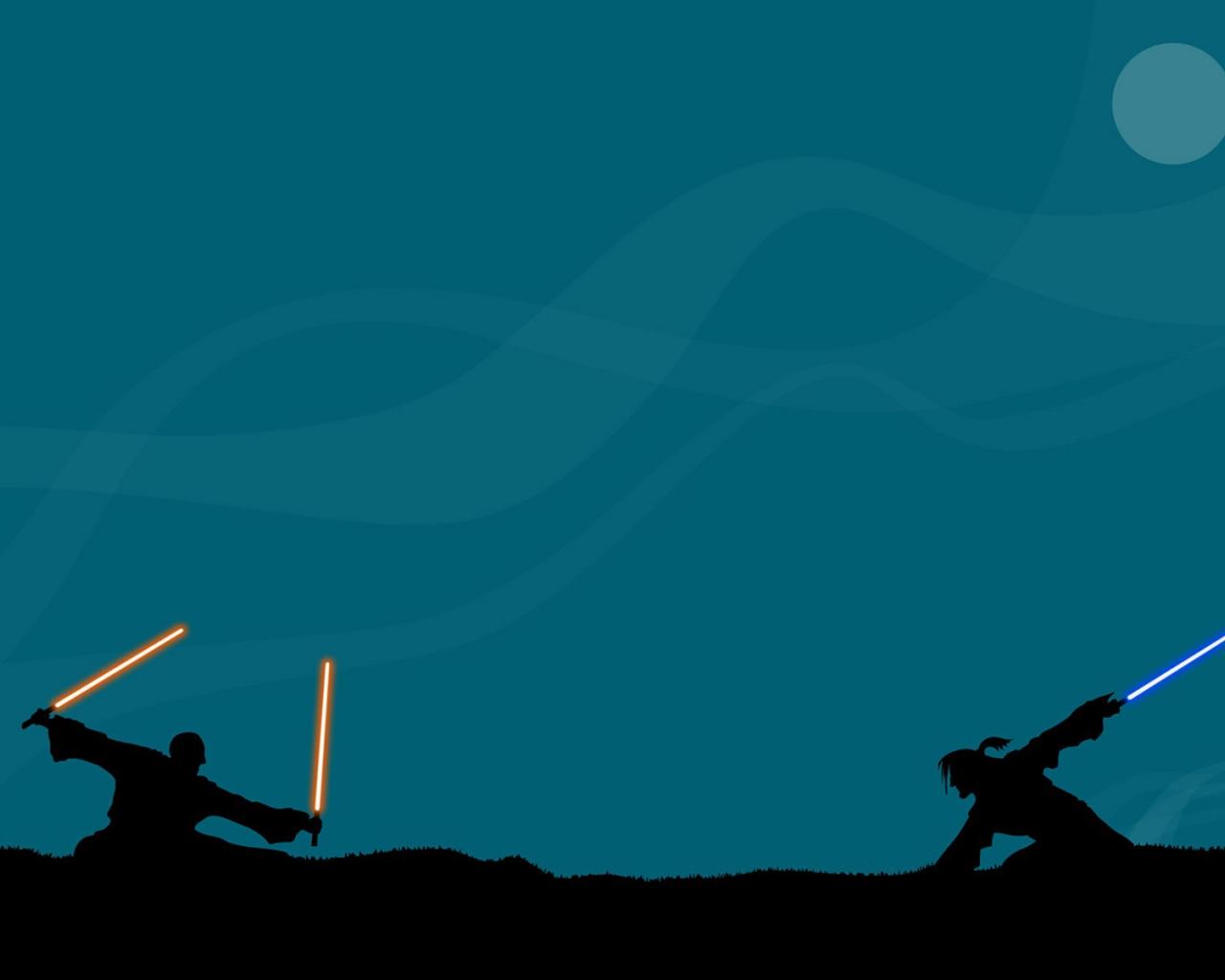 Обои Бой на световых мечах, голубой фон