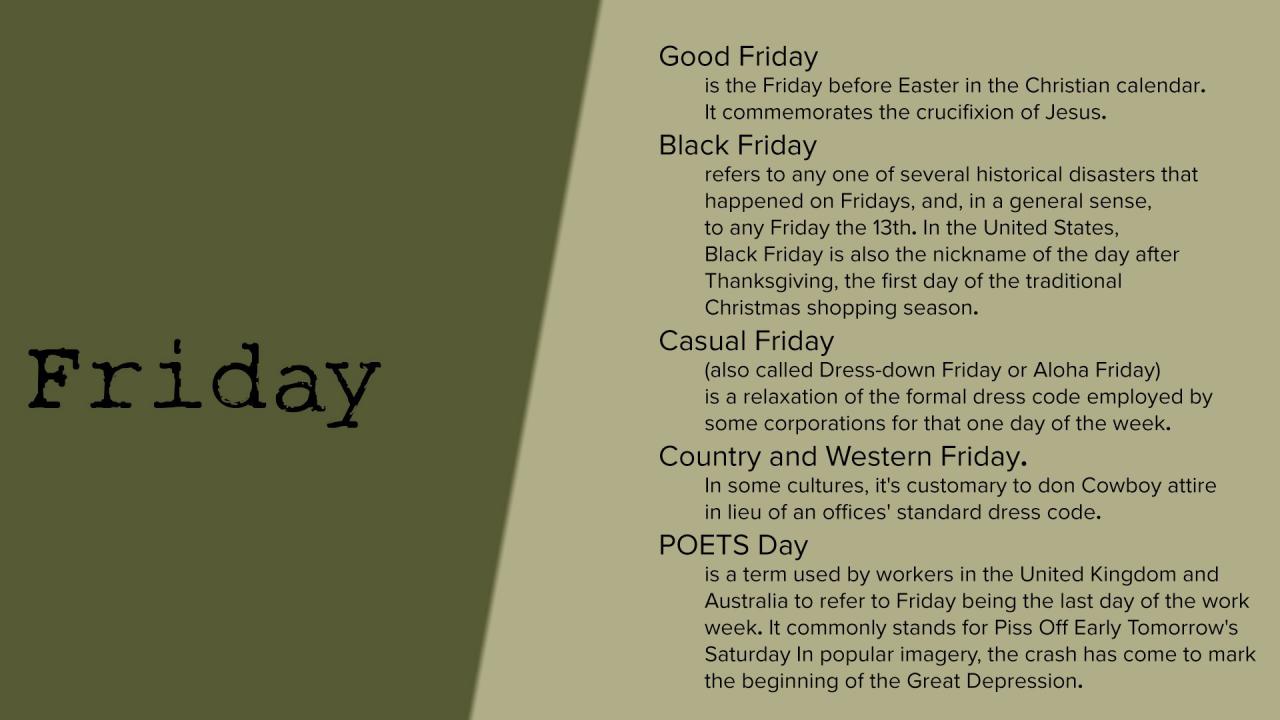 Обои Описание пятницы на английском языке