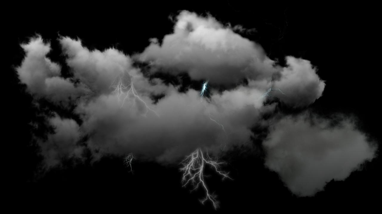 Обои Молнии в пушистых белых облаках