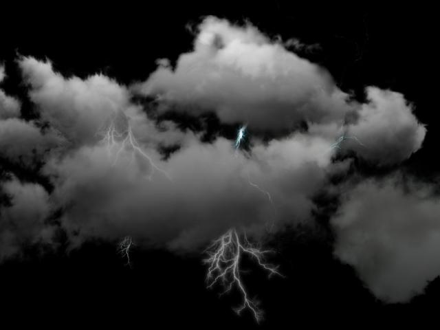 Обои Молнии в пушистых белых облаках