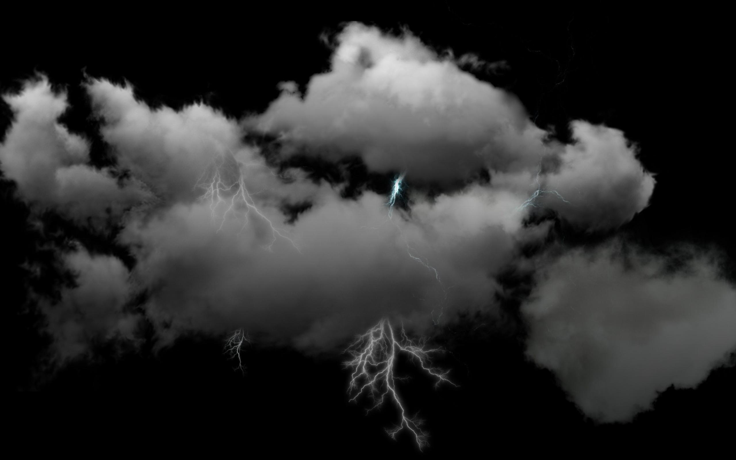 Обои Молнии в пушистых белых облаках