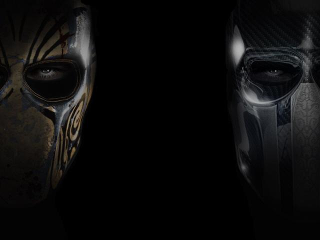 Обои Два лица в масках, черный фон