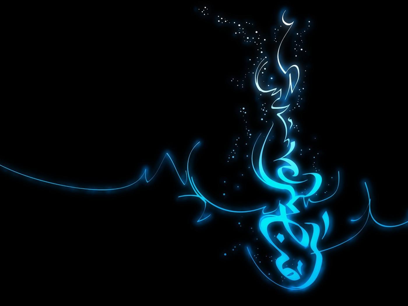 Обои Голубая неоновая надпись, черный фон
