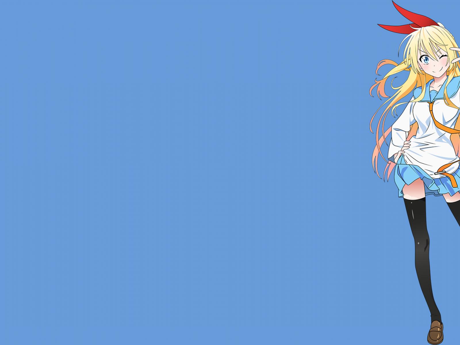 Обои Аниме девушка подмигивает, голубой фон