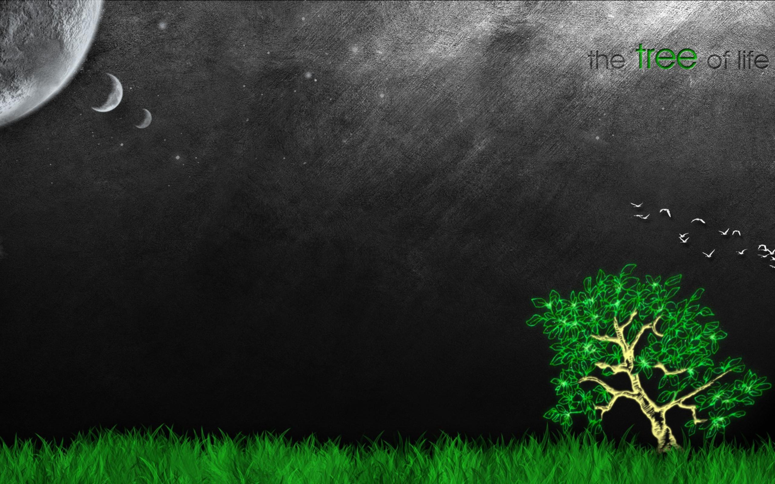 Обои Зеленое дерево жизни, серый фон