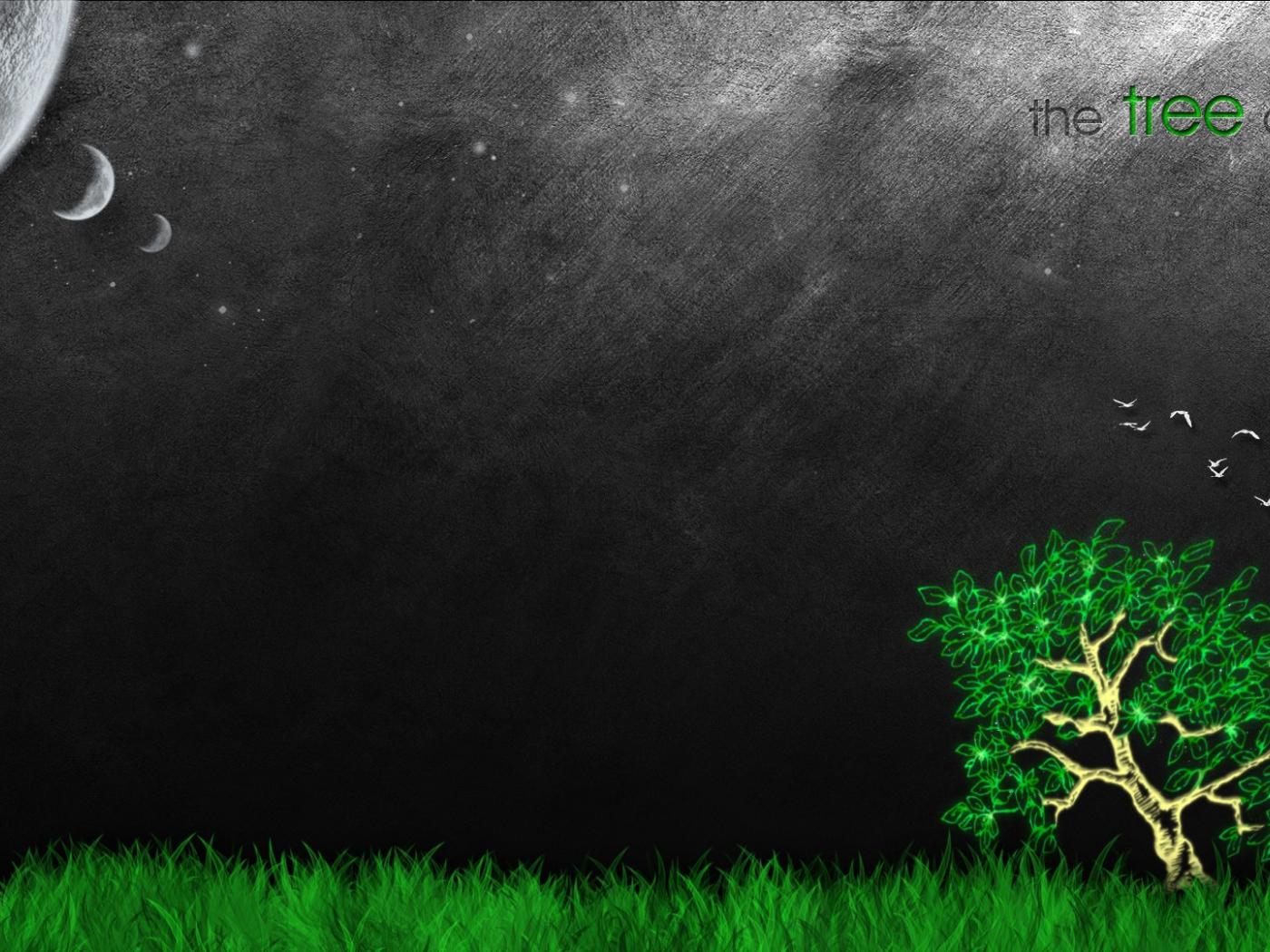 Обои Зеленое дерево жизни, серый фон