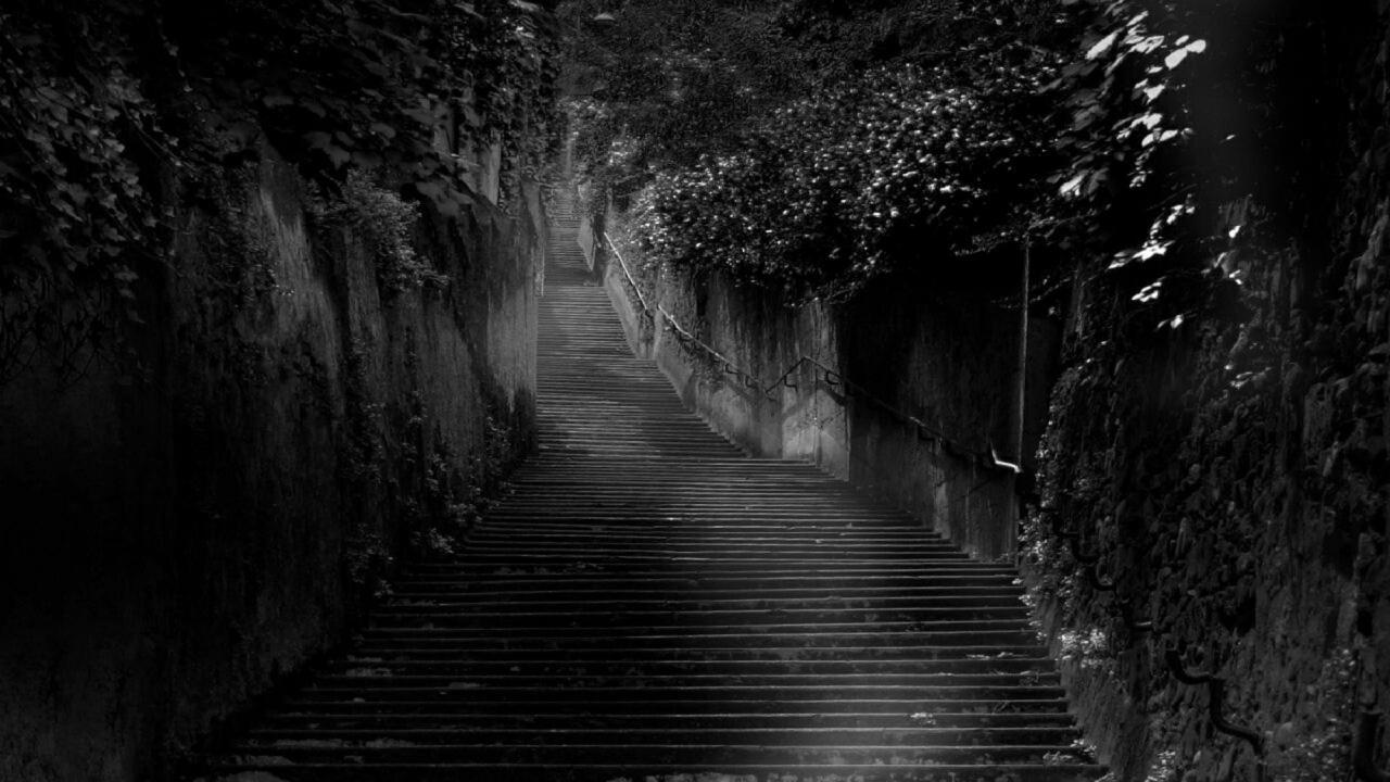 Обои Черная лестница среди черных зарослей