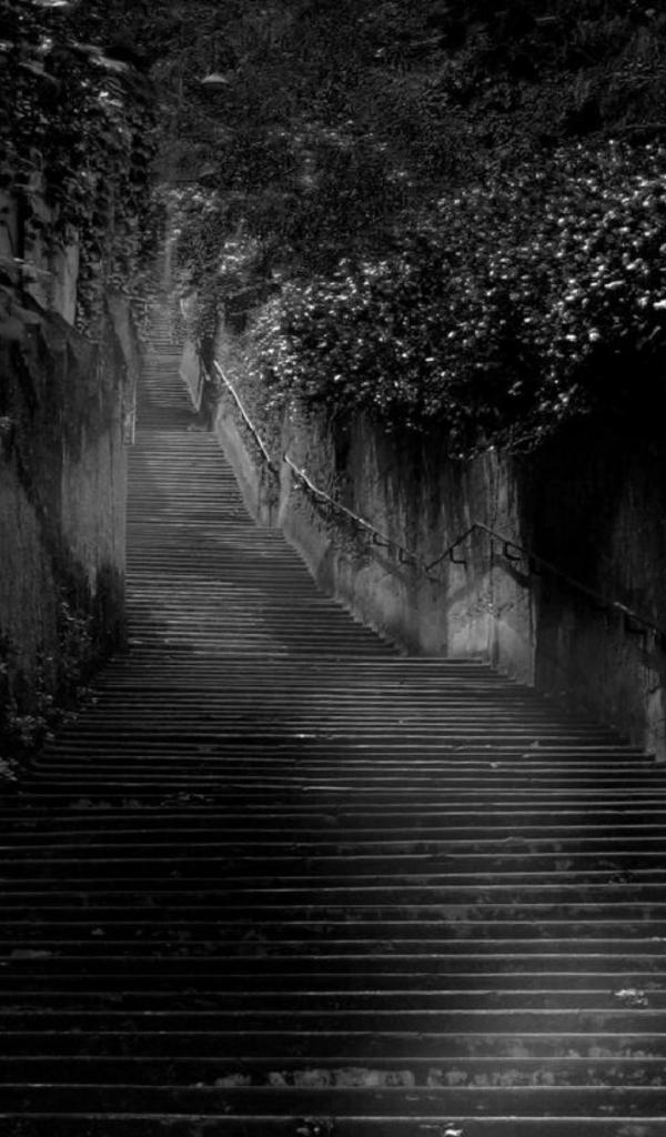 Обои Черная лестница среди черных зарослей