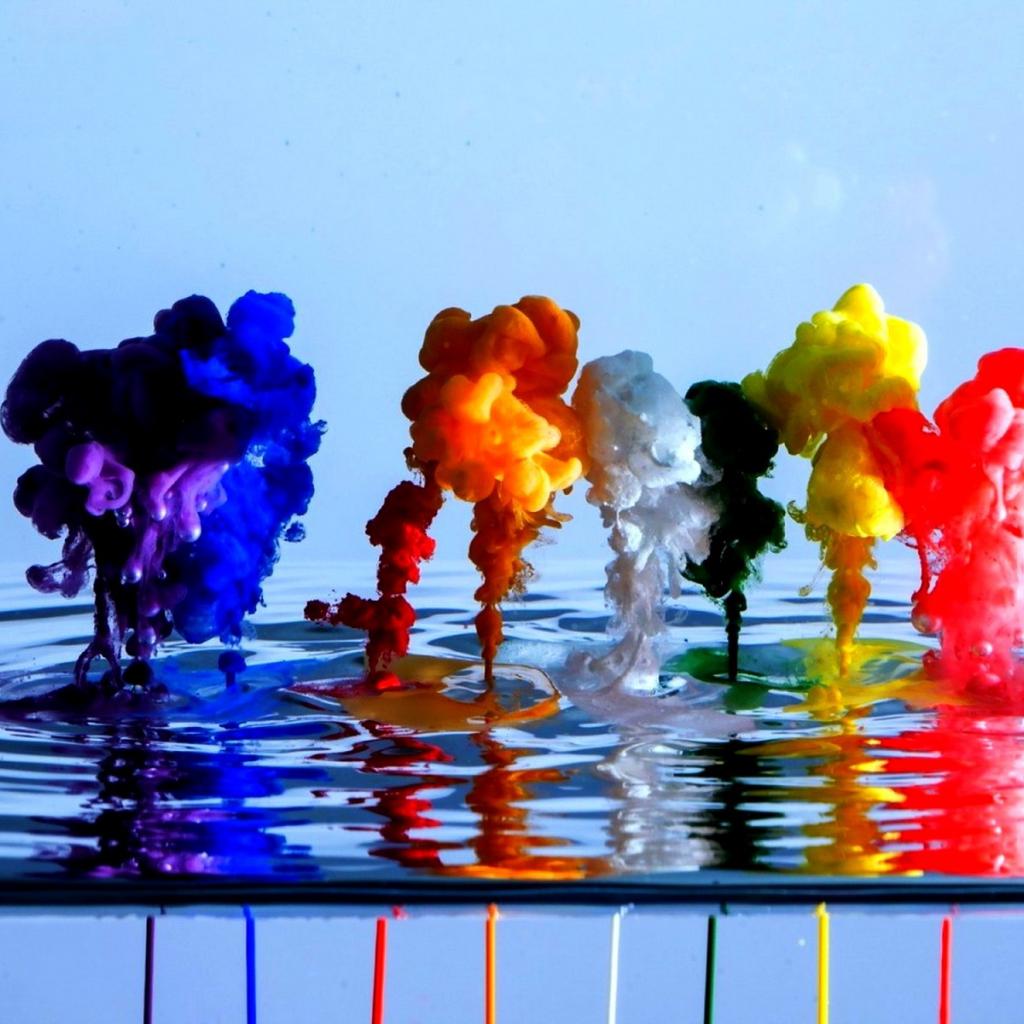 Обои Всплески ярких красок в воде