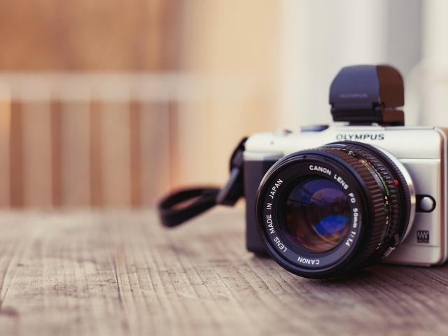 Обои Фотоаппарат Олимпус на столе