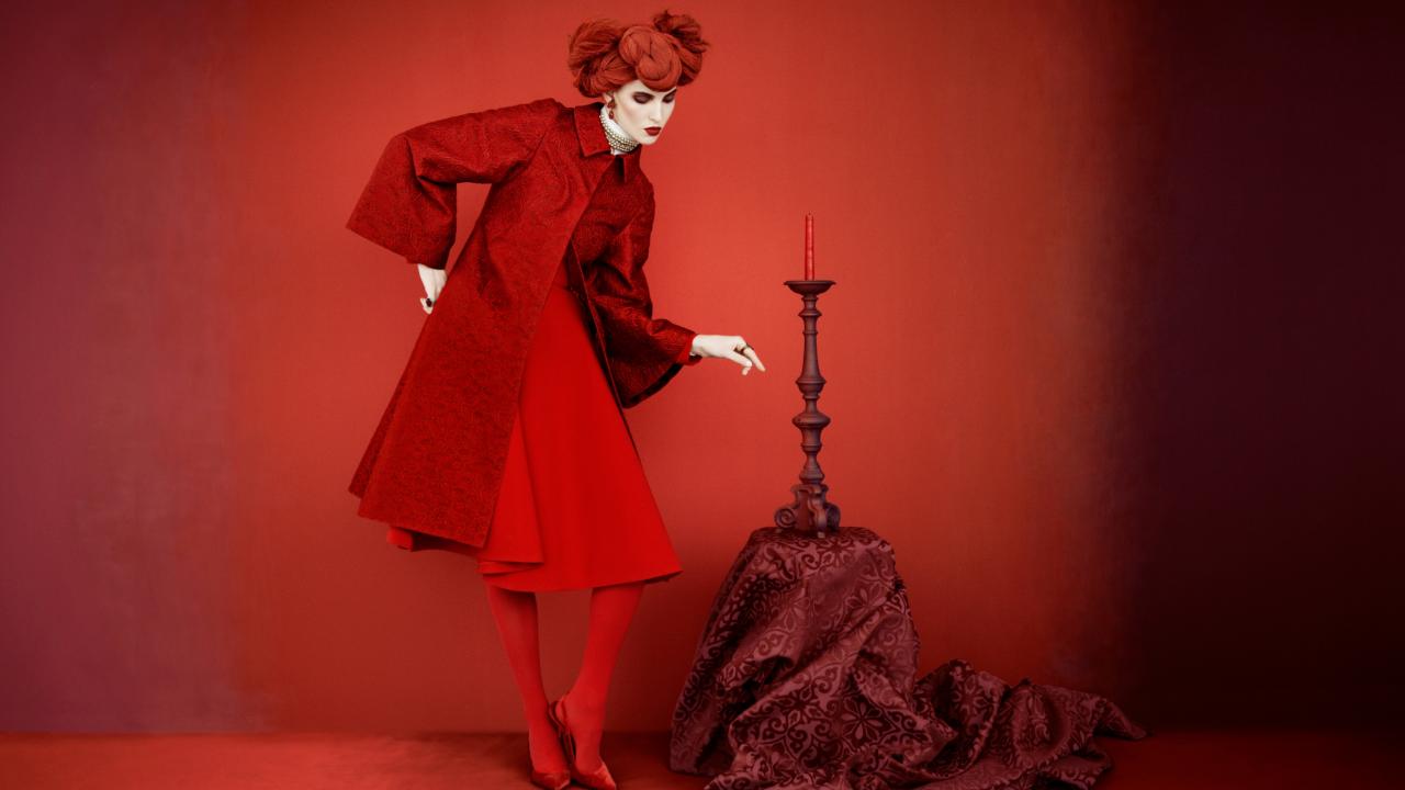Обои Фотография девушки в красном на красном фоне