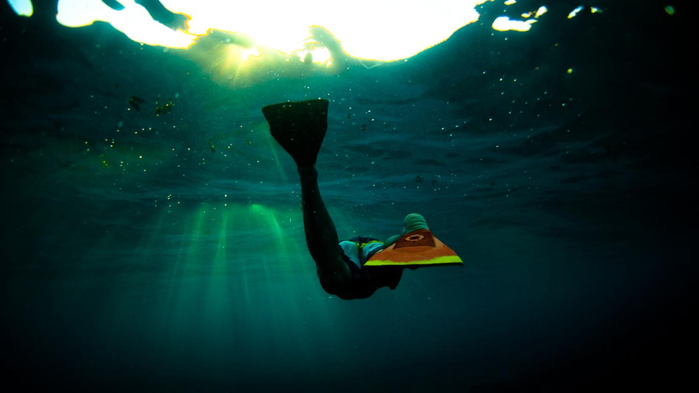 Обои Подводная фотография пловца в ластах