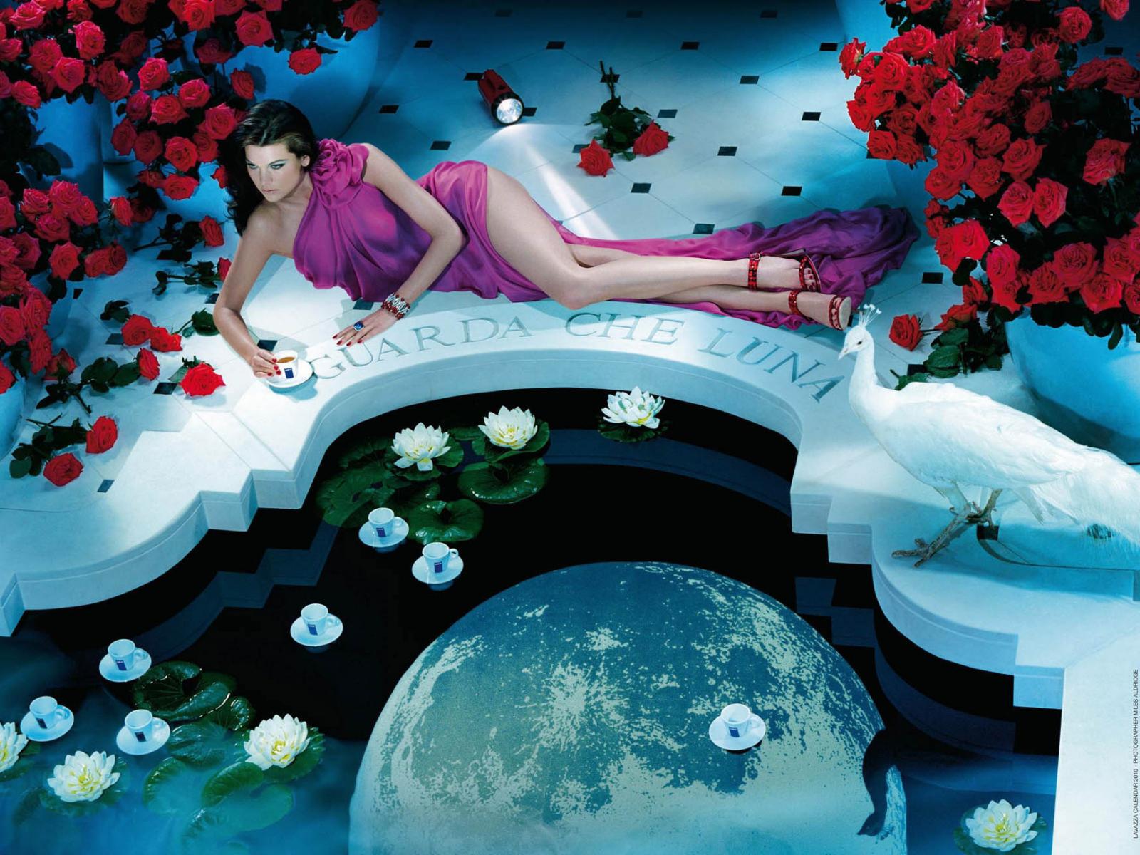 Обои Девушка у бассейна с треногой для фотоаппарата