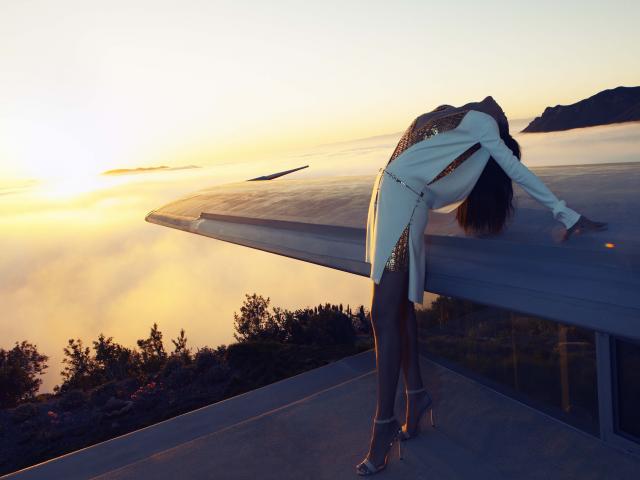 Обои Девушка на крыше дома