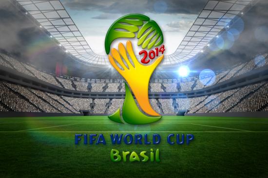 Обои Логотип на фоне стадиона на Чемпионате мира по футболу в Бразилии 2014