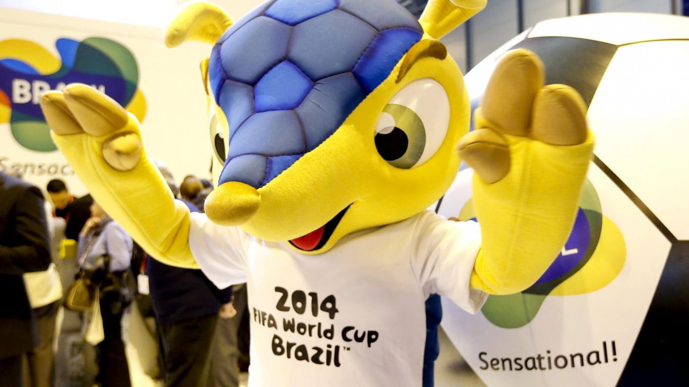 Обои Талисман Чемпионата Мира по футболу в Бразилии 2014 приветствует болельщиков