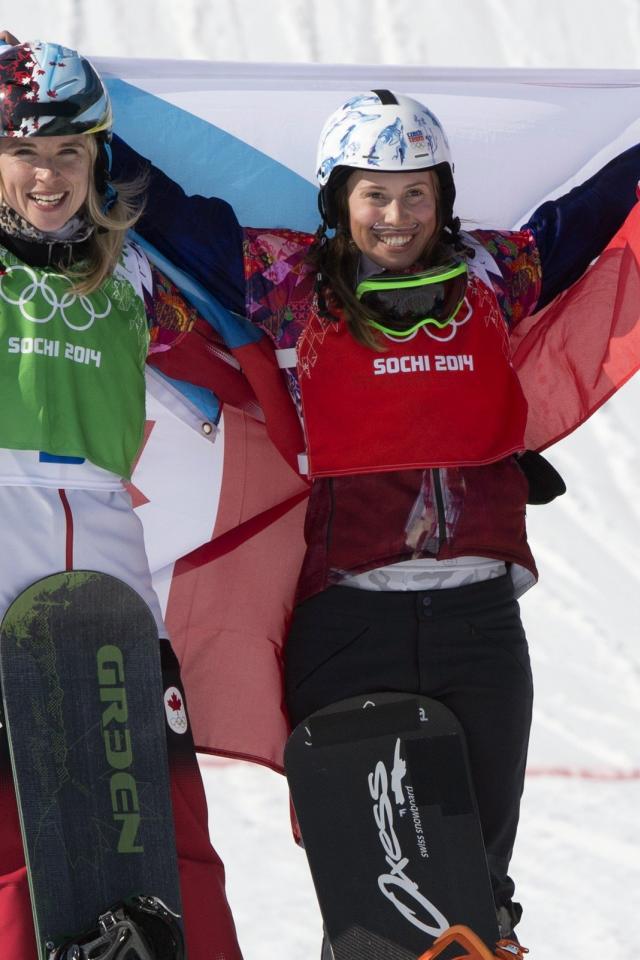 Обои Обладательница серебряной медали канадская сноубордистка Доминик Мальте на олимпиаде в Сочи
