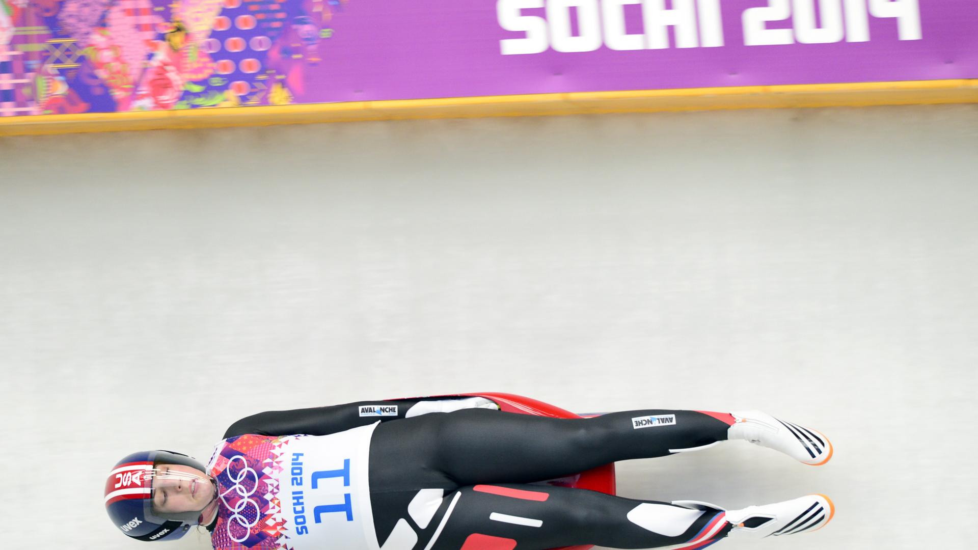 Обои Обладательница бронзовой медали американская саночница Эрин Хэмлин на олимпиаде в Сочи