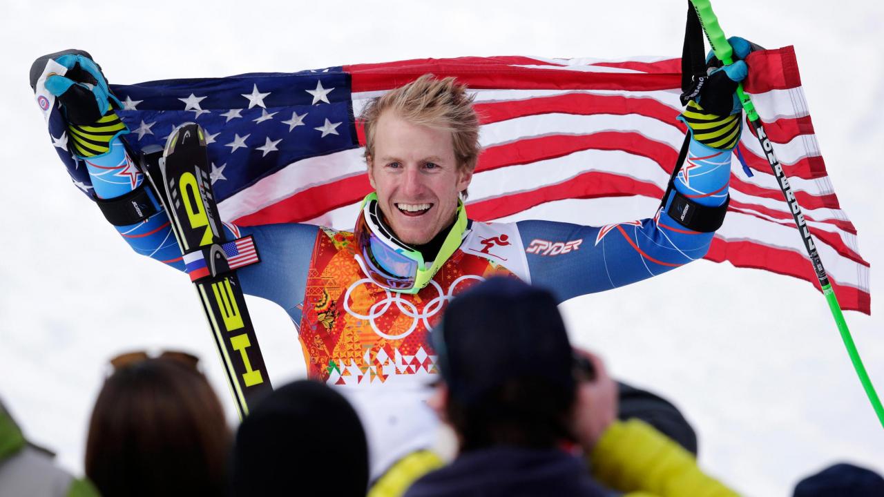 Обои Обладатель золотой медали американский лыжник Тед Лигети на олимпиаде в Сочи