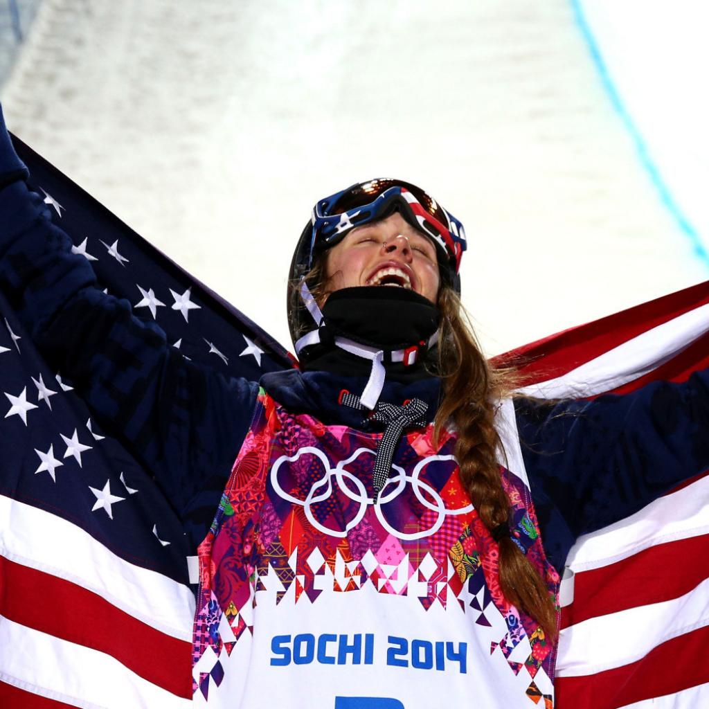 Обои Обладательница золотой медали американская фристайлистка Мэдди Боумэн на олимпиаде в Сочи