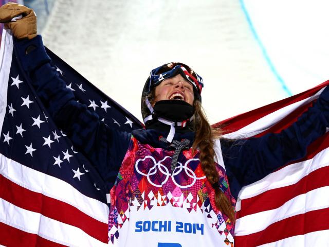 Обои Обладательница золотой медали американская фристайлистка Мэдди Боумэн на олимпиаде в Сочи