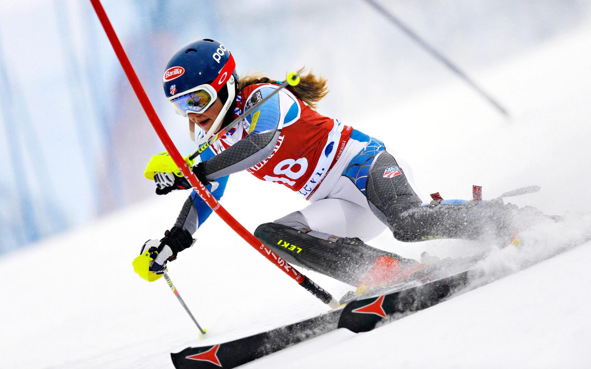 Обои Обладательница золотой медали американская лыжница Микаэла Шиффрин на олимпиаде в Сочи
