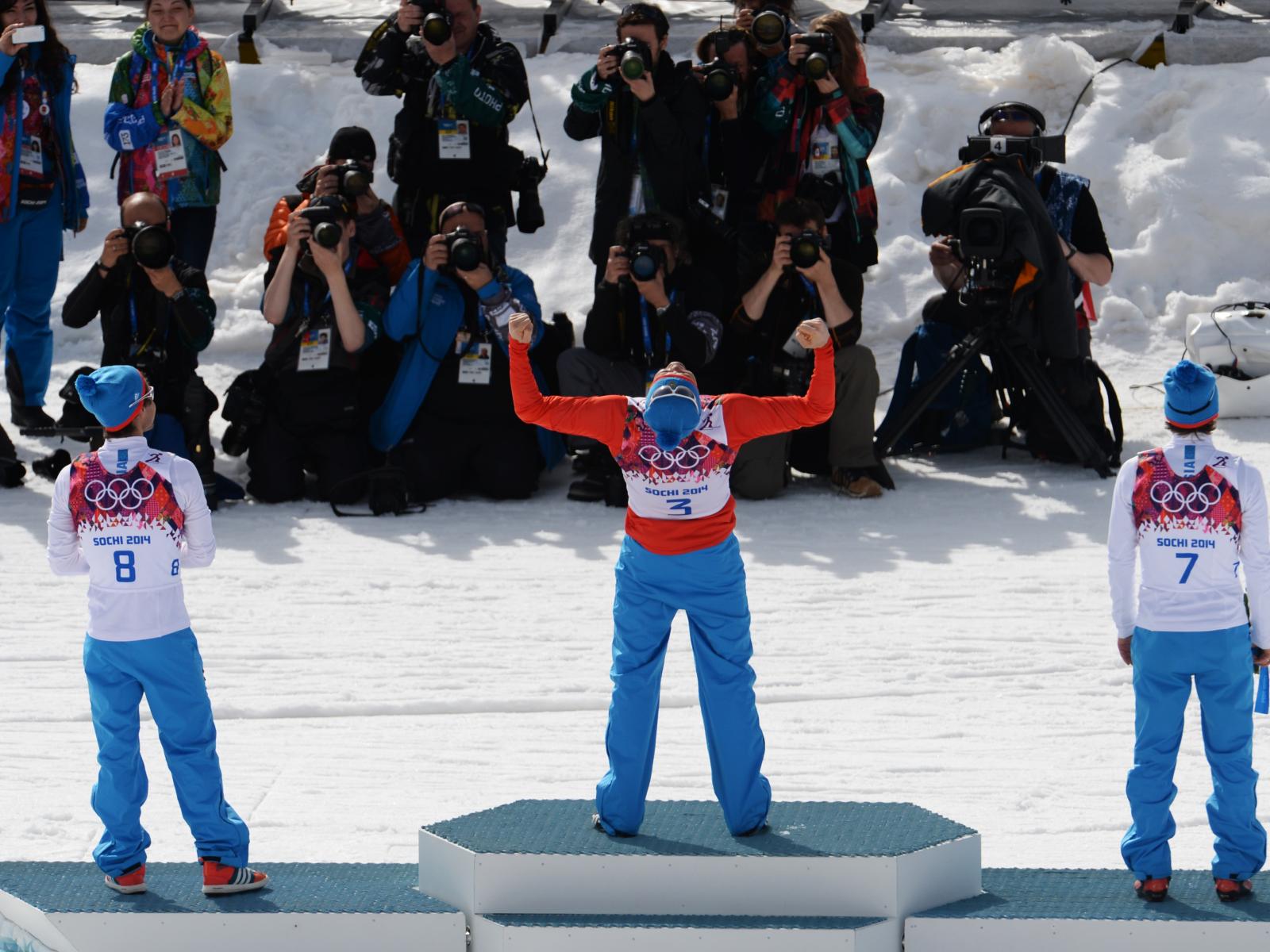 Обои Российский лыжник Александр Легков на олимпиаде в Сочи