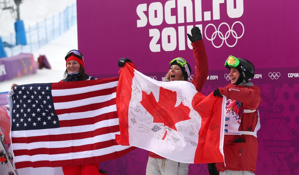 Обои Обладательница бронзовой медали Ким Ламарре канадская фристайлистка на олимпиаде в Сочи