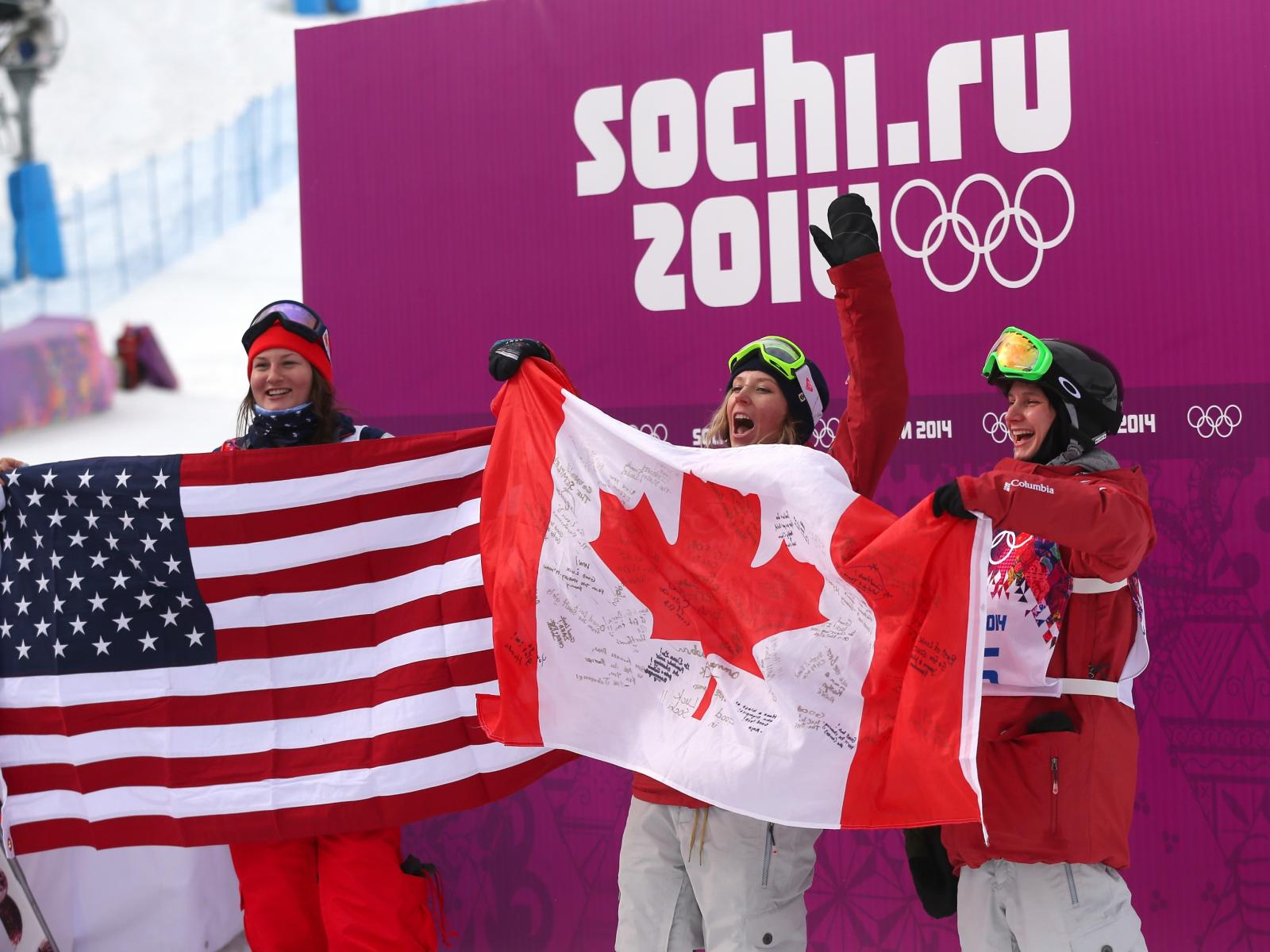 Обои Обладательница бронзовой медали Ким Ламарре канадская фристайлистка на олимпиаде в Сочи
