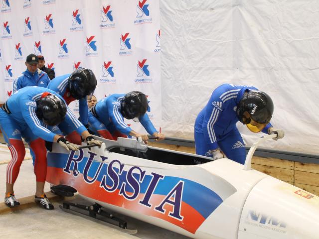 Обои Золотая медаль российские бобслеисты на олимпиаде в Сочи