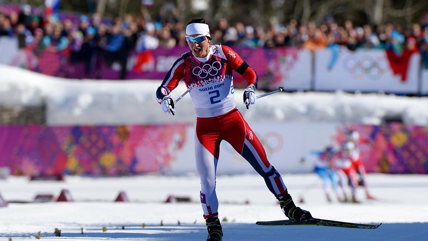 Обои Обладательница золотой медали Марит Бьорген в дисциплине лыжные гонки на олимпиаде