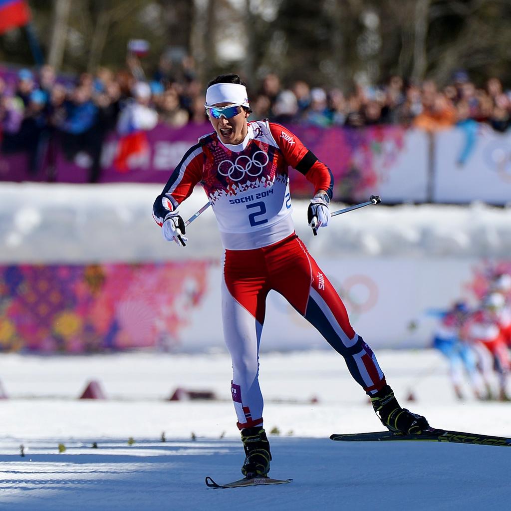 Обои Обладательница золотой медали Марит Бьорген в дисциплине лыжные гонки на олимпиаде