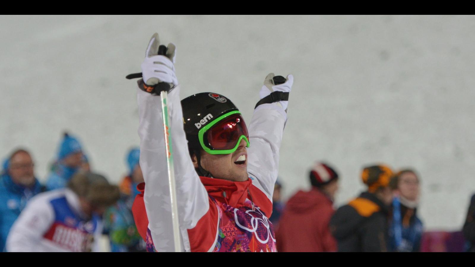 Обои Обладатель золотой медали канадский фристайлист Александр Билодо в Сочи