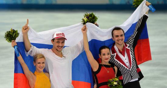 Обои Российские фигуристы Федор Климов и Ксения Столбова на олимпиаде в Сочи