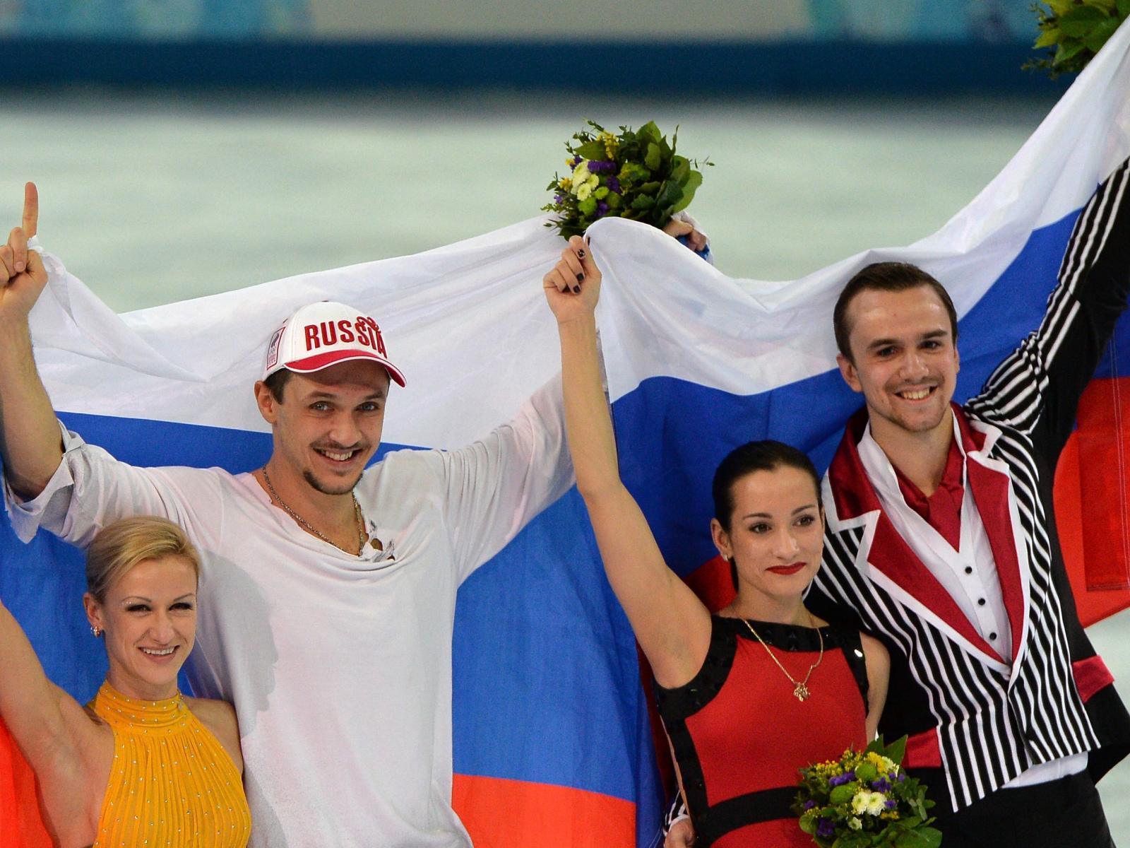 Обои Российские фигуристы Федор Климов и Ксения Столбова на олимпиаде в Сочи