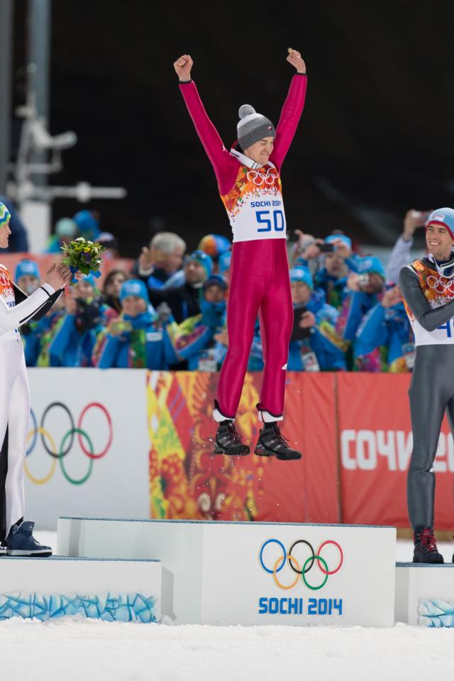 Обои Обладатель золотых медалей Камил Стох в дисциплине прыжки на лыжах с трамплина