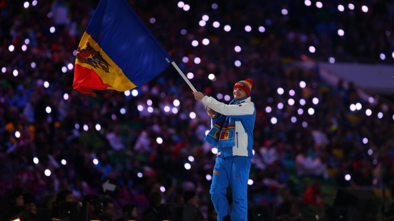 Обои Флаг команды Молдавии на арене на открытии Олимпиады в Сочи