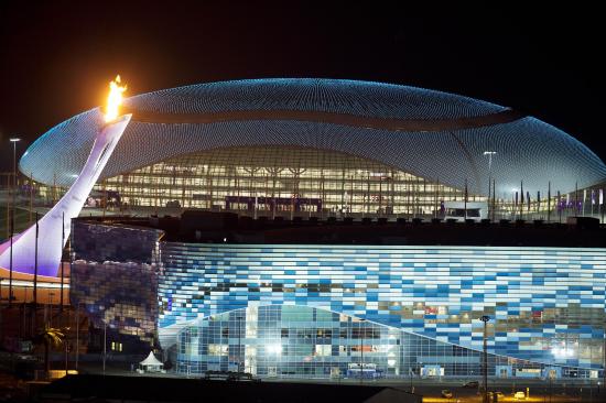 Обои Олимпийский факел на фоне стадиона на Олимпиаде в Сочи