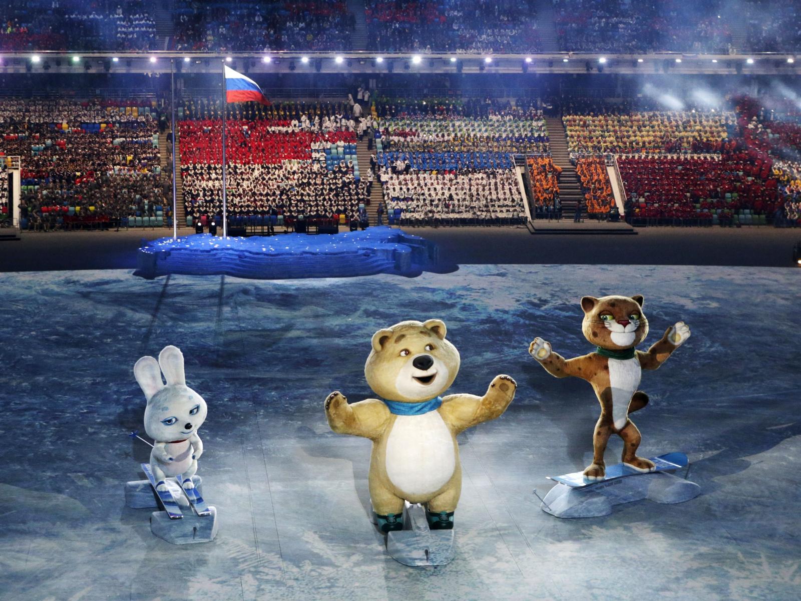 Обои Олимпийские символы на арене стадиона на открытии Олимпиады в Сочи