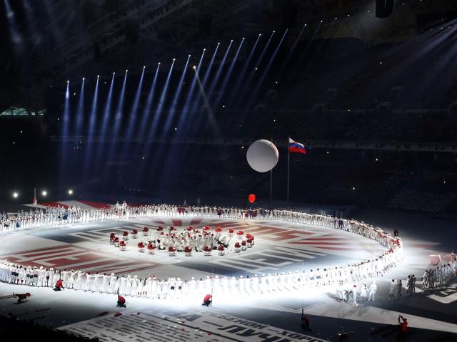 Обои Актеры на арене стадиона на открытии Олимпиады в Сочи