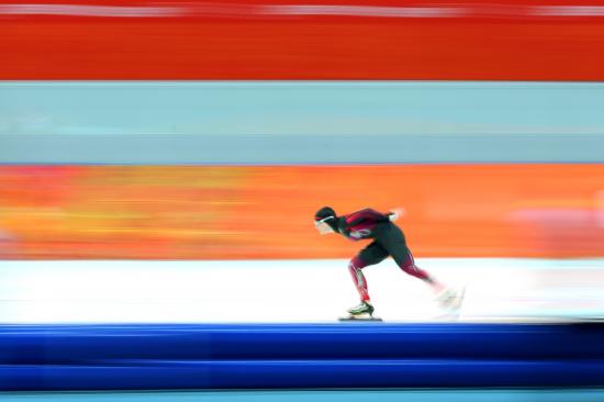 Обои Скоростной бег на коньках на фоне стены на Олимпиаде в Сочи