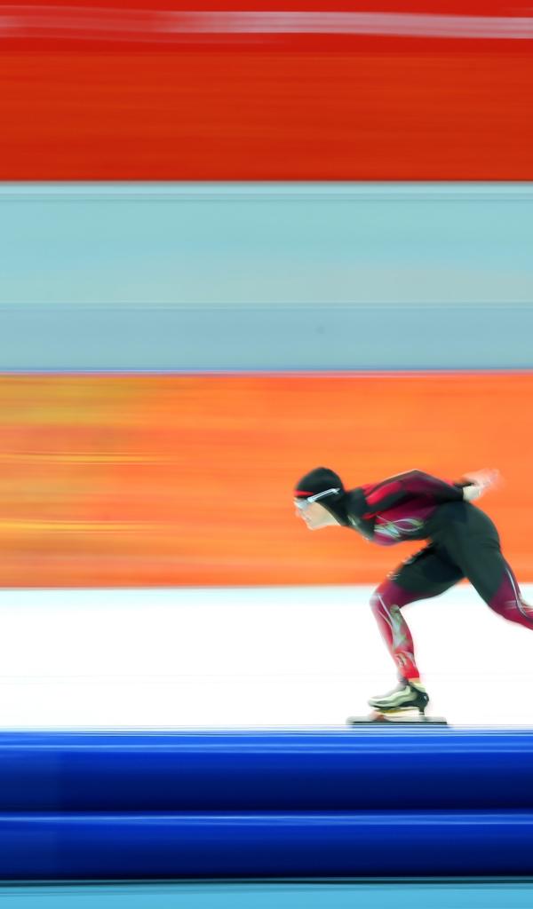 Обои Скоростной бег на коньках на фоне стены на Олимпиаде в Сочи