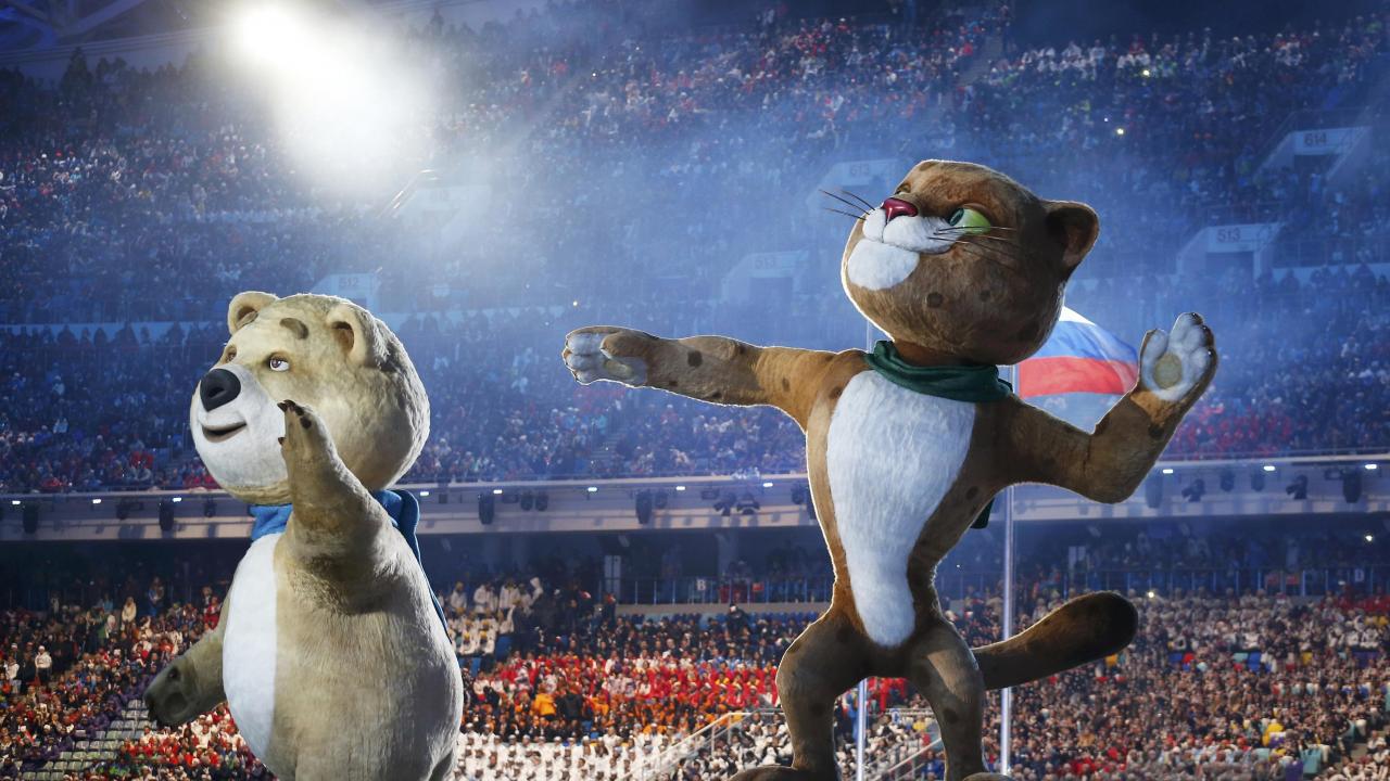 Обои Символы Олимпиады в Сочи на фоне трибун